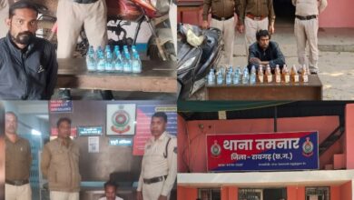 रायगढ़ में ‘ऑपरेशन आघात’ की बड़ी कार्रवाई 64 पाव देशी शराब, 22 लीटर महुआ, 1.150 किग्रा गांजा, 3 दोपहिया और 2 मोबाइल जब्त — 5 आरोपी गिरफ्तार