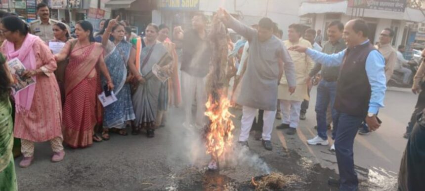 एपस्टीन फाइल विवाद: कोरबा में केंद्रीय मंत्री के खिलाफ महिला कांग्रेस का पुतला