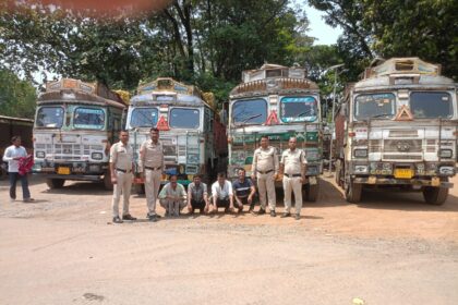 “ऑपरेशन प्रहार” के तहत रायगढ़ पुलिस का बड़ा एक्शन: 4 ट्रकों से 82 लाख से अधिक का अवैध कबाड़ जब्त, 4 चालक गिरफ्तार