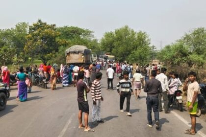 रायगढ़ में दर्दनाक सड़क हादसा: कोयला लदे ट्रेलर ने ली महिला की जान, पति और मासूम बच्चा गंभीर घायल — गुस्साए ग्रामीणों ने किया चक्काजाम