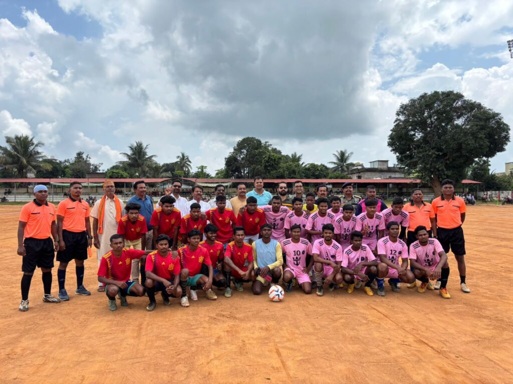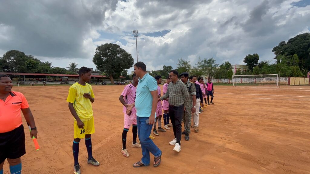 इसी तारतम्य में आज दिनांक 06.09.2025 को श्री सुशील नायक, अतिरिक्त पुलिस अधीक्षक नारायणपुर ने क्रीड़ा परिसर, नारायणपुर में अबूझमाड़ खेल उत्सव 2025 के अंतर्गत जिला स्तरीय फूटबॉल प्रतियोगिता का शुभारंभ किया। जिला स्तरीय प्रतियोगिता का शुभारंभ करते हुए अतिरिक्त पुलिस अधीक्षक श्री सुशील नायक ने सर्वप्रथम भरण्डा वर्सेज कोहकामेटा के मध्य खेल का शुभारंभ करते हुए टॉस कराया, भरण्डा की टीम ने टॉस जीतकर क्षेत्ररक्षण का दायित्व स्वीकार करते हुए कोहकामेटा को सर्विस का अवसर दिया।