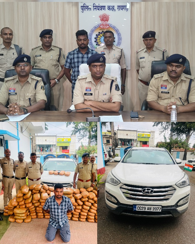 रायगढ़, 31 अक्टूबर । पुलिस अधीक्षक श्री दिव्यांग कुमार पटेल के दिशा-निर्देशन में मादक पदार्थों की अवैध तस्करी के विरुद्ध चलाए जा रहे अभियान के तहत घरघोड़ा थाना पुलिस ने एक बड़ी कार्रवाई को अंजाम दिया है। कल देर शाम घरघोड़ा–लैलूंगा मुख्य मार्ग पर घेराबंदी कर पुलिस टीम ने एक हुंडई कार में गांजा तस्करी कर रहे युवक को गिरफ्तार किया। आरोपी की पहचान संतोष दास पिता बुधराम दास उम्र 26 वर्ष निवासी ग्राम चीताबहार थाना दरिमा, जिला सरगुजा के रूप में हुई है।