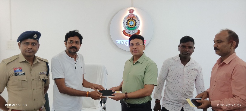 आज दिनांक 11.10.25 को साइबर सेल जशपुर के द्वारा पुलिस अधीक्षक कार्यालय जशपुर, के कंट्रोल रूम में एक विशेष कार्यक्रम का आयोजन किया गया। जिसमें की सायबर सेल के द्वारा जिले के विभिन्न थाना/ चौकी क्षेत्रों में चोरी व गुम हुए मोबाइल फोन को ढूंढकर उनके मालिकों के सुपुर्द किया गया।