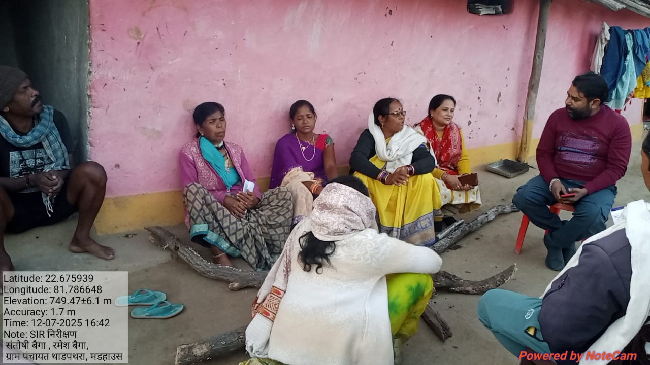 जिलाध्यक्ष कांग्रेस Gpm गजमति भानु का सघन दौरा_SIR के संदर्भ में मरवाही विधानसभा सभा के ग्राम पंचायत चुकतीपानी कोटा विधानसभा सभा के ठाढ़पथरा में विशेष पिछड़ी जनजाति बैगा परिवार SIR निरीक्षण किया गया