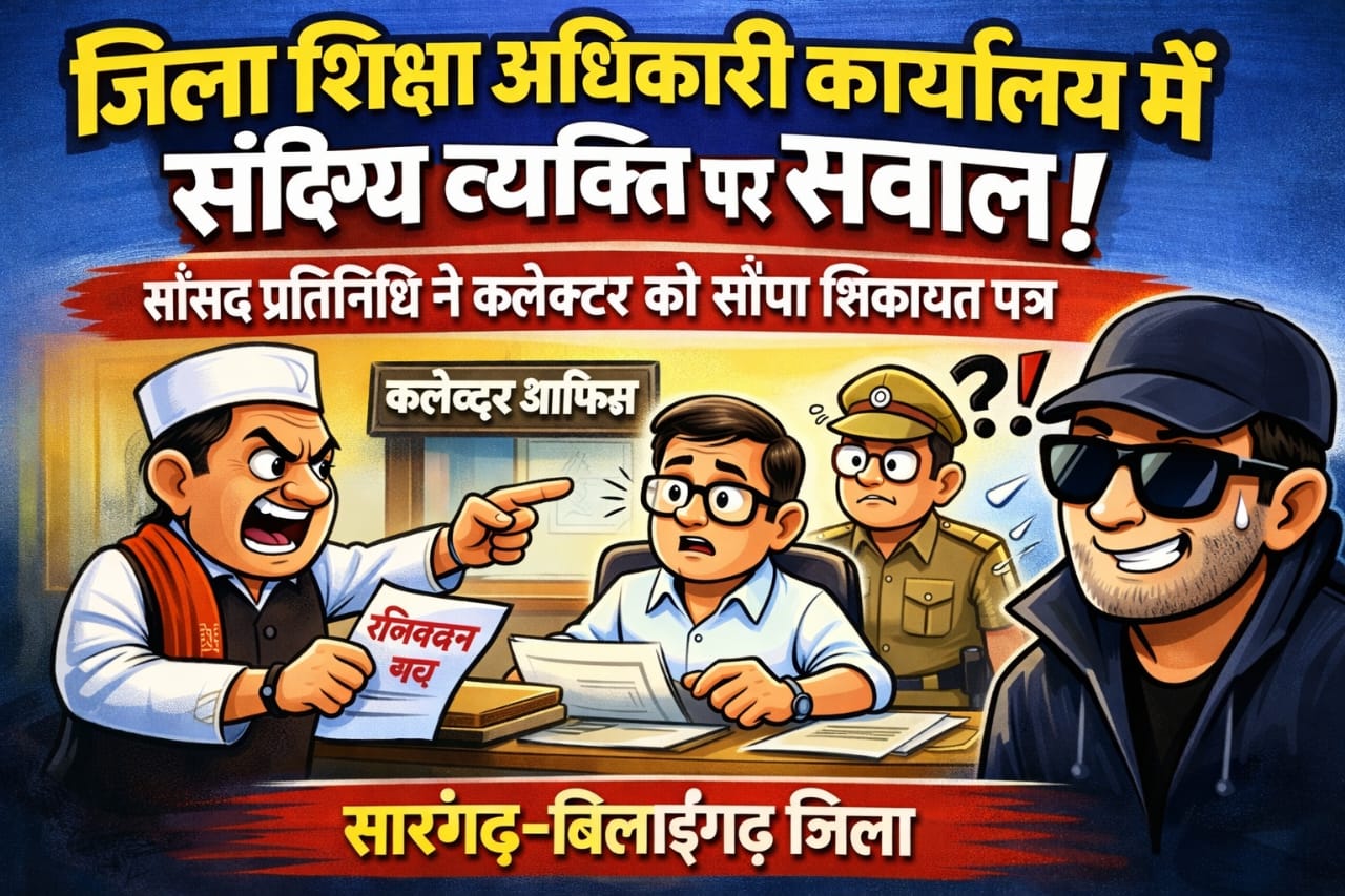 सारंगढ //जिला शिक्षा अधिकारी कार्यालय, सारंगढ़–बिलाईगढ़ में एक संदिग्ध व्यक्ति की कथित भूमिका को लेकर गंभीर सवाल खड़े हो गए हैं। इस मामले में संतोष सोनवानी, सांसद प्रतिनिधि जांजगीर–चांपा ने कलेक्टर को लिखित शिकायत पत्र सौंपते हुए जांच एवं कार्रवाई की मांग की है।