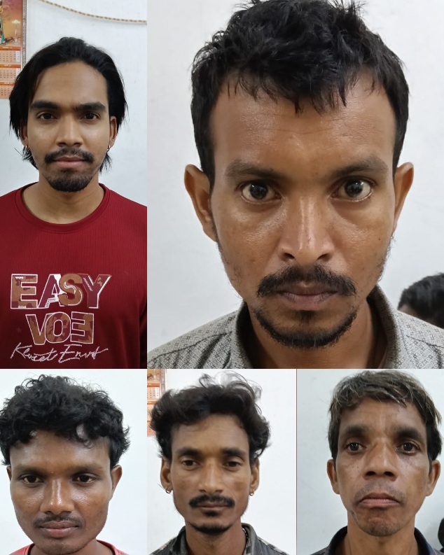 सूचना पर पुलिस टीम द्वारा त्वरित कार्यवाही करते हुए मौके पर दबिश देकर आरोपियों की घेराबंदी कर कुल 05 आरोपियों कों मौक़े से जुआ खेलते पकड़ा गया,आरोपियों से पूछताछ करने पर अपना नाम (01) राजलाल मानिकपुरी आत्मज फेकू दास उम्र 25 वर्ष (02) सत्येन्द्र आत्मज शिवनंदन उम्र 28 वर्ष (03) वीर सिंह आत्मज रंजित राम उम्र 40 वर्ष (04) कमल पिता अशोक उम्र 25 वर्ष (05) बाबूलाल आत्मज शिवा उम्र 32 वर्ष सभी निवासी सलका थाना उदयपुर का होना बताये आरोपियों के कब्जे से कुल 2200/- रुपये नगद एवं ताश का 52 पत्ता, 01 नग टोर्च जप्त किया गया हैं,