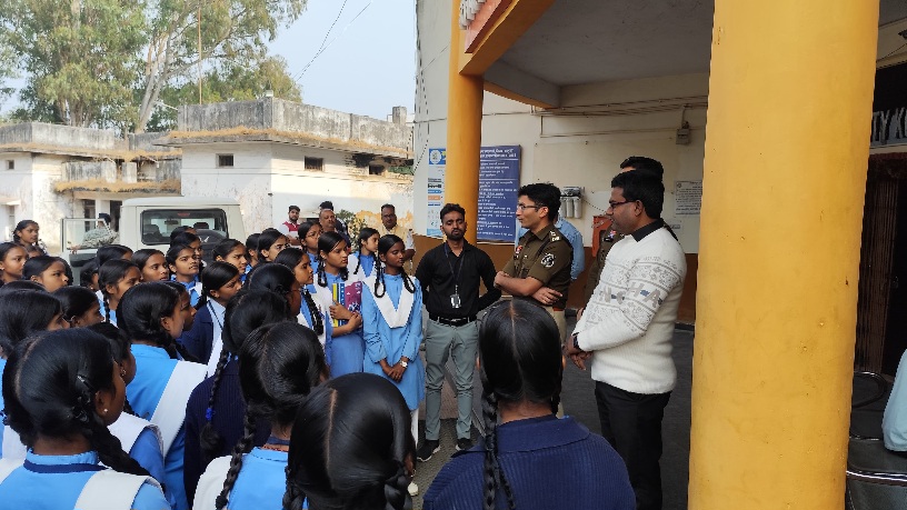 अंबिकापुर । डीआईजी एवं वरिष्ठ पुलिस अधीक्षक श्री राजेश कुमार अग्रवाल (भा.पु.से.) के दिशा-निर्देशन में शासकीय कन्या उच्चतर माध्यमिक विद्यालय, अंबिकापुर की छात्राओं को थाना कोतवाली अंबिकापुर का शैक्षणिक एवं जागरूकता भ्रमण कराया गया। इस भ्रमण का उद्देश्य छात्राओं में विधिक जागरूकता, महिला सुरक्षा, आत्मरक्षा तथा साइबर अपराधों से बचाव संबंधी जानकारी प्रदान करना रहा।
