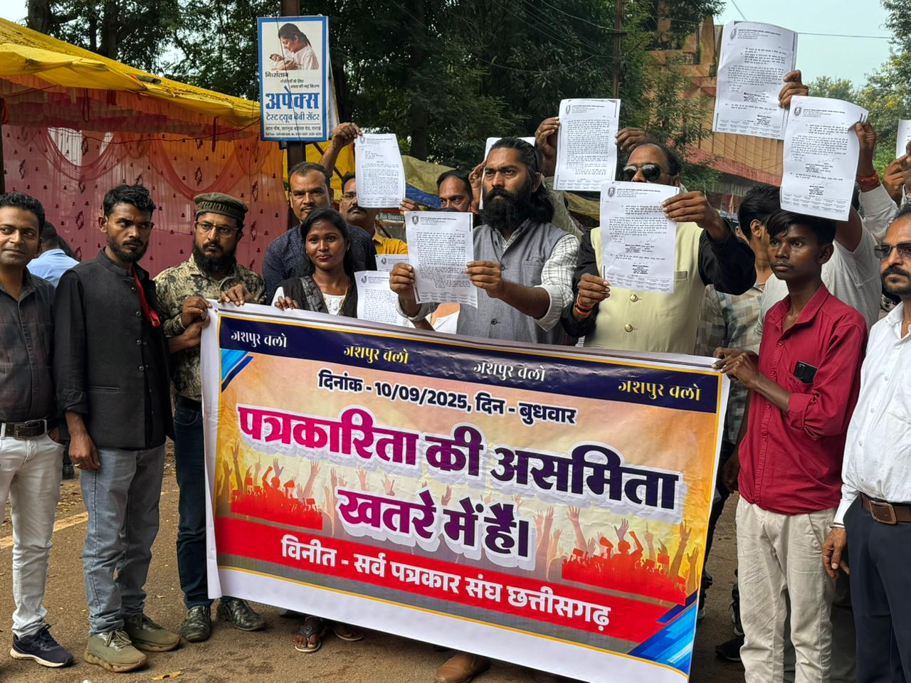 जशपुर। मुख्यमंत्री के गृह ज़िले जशपुर में पत्रकारों पर नोटिस थोपने और मानहानि का मुकदमा दर्ज कराने की धमकी के विरोध में जिलेभर के पत्रकार संगठनों ने शुक्रवार को ज़िला कलेक्टर कार्यालय पहुंचकर जोरदार विरोध दर्ज कराया। इस दौरान उन्होंने कलेक्टर के माध्यम से मुख्यमंत्री को एक ज्ञापन सौंपा, जिसमें जनसंपर्क विभाग की सहायक संचालक नूतन सिदार के खिलाफ कठोर कार्रवाई की मांग की गई है।