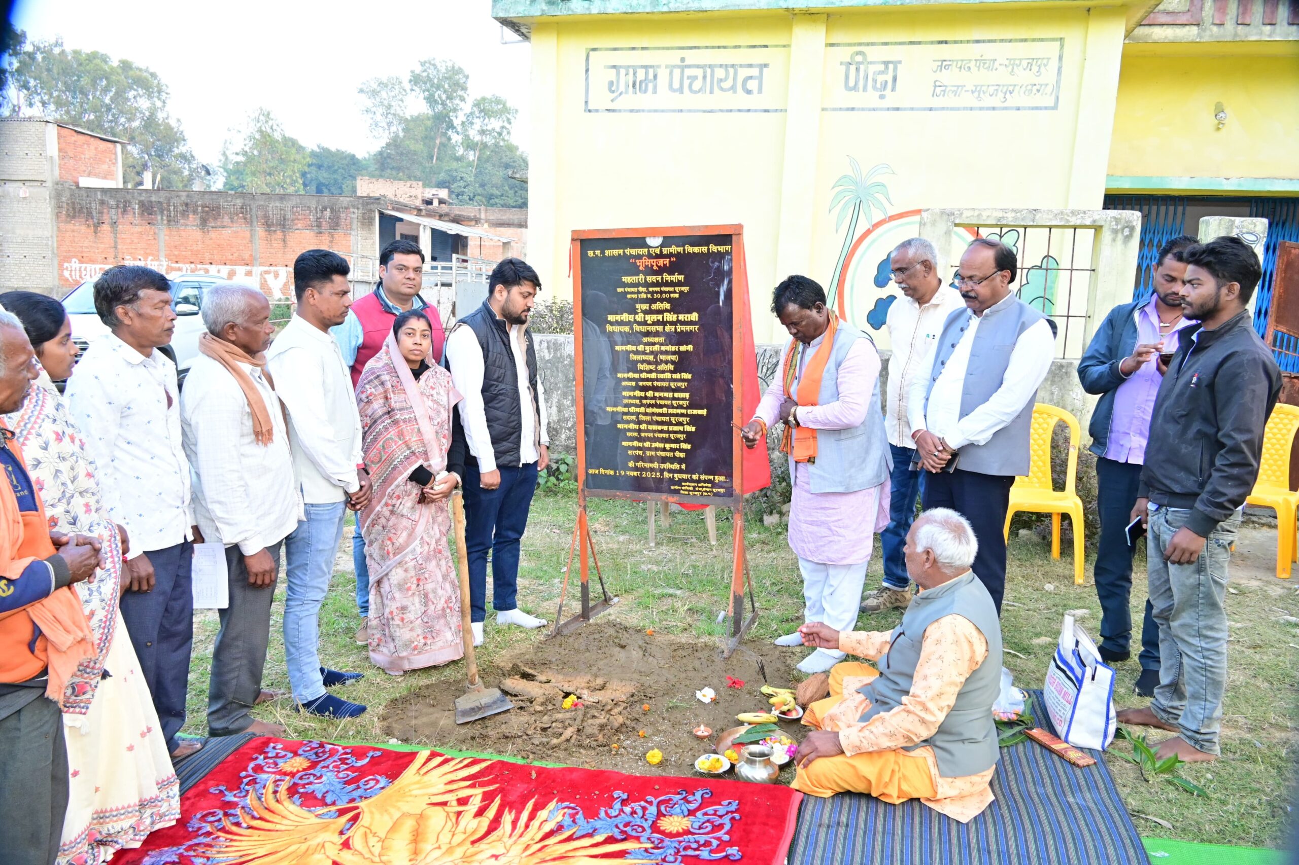 सूरजपुर। जनपद पंचायत सूरजपुर के अंतर्गत ग्राम पंचायत बेलटिकरी मुख्य अतिथि प्रेमनगर विधायक भूलन सिंह मरावी ने किया शिलान्यास और पीढ़ा में बुधवार को महतारी सदन निर्माण कार्य का भूमि पूजन वैदिक मंत्रोच्चार के साथ संपन्न हुआ। कार्यक्रम में मुख्य अतिथि के रूप में प्रेमनगर विधायक भूलन सिंह मरावी उपस्थित रहे। कार्यक्रम की अध्यक्षता भाजपा जिला अध्यक्ष मुरली मनोहर सोनी ने की, जबकि विशिष्ट अतिथि के रूप में जनपद पंचायत अध्यक्ष सूरजपुर स्वाति सिंह शामिल रहीं। दोनों ग्राम पंचायतों में कुल 60 लाख रुपये की लागत से महतारी सदन का निर्माण प्रस्तावित है। यह भवन ग्रामीण महिलाओं, सामाजिक संगठनों और ग्राम स्तरीय गतिविधियों के संचालन का प्रमुख केंद्र बनेगा।