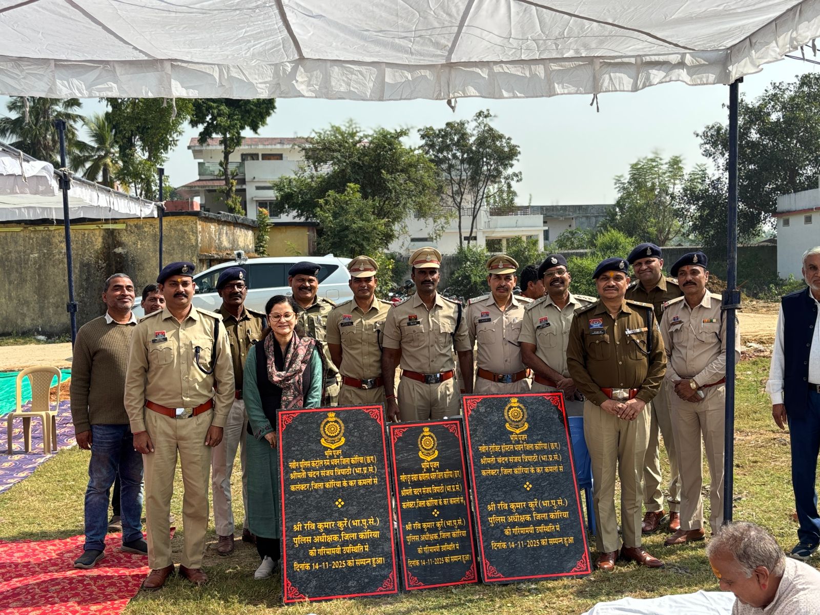 कार्यक्रम में मुख्य रूप से कलेक्टर कोरिया श्रीमती चंदन संजय त्रिपाठी, पुलिस अधीक्षक कोरिया श्री रवि कुमार कुर्रे, अतिरिक्त पुलिस अधीक्षक पंकज पटेल, उप पुलिस अधीक्षक श्यामलाल मधुकर, उप पुलिस अधीक्षक राजेश साहू, उप पुलिस अधीक्षक नेल्सन कुजूर, रक्षित निरीक्षक नीतिश आर. नायर, रक्षित निरीक्षक विपुल आनंद जांगड़े, निरीक्षक हेमंत अग्रवाल, दूरसंचार प्रभारी, यातायात प्रभारी, थाना प्रभारी अजाक सहित जिले के समस्त अधिकारी-कर्मचारी उपस्थित रहे। भूमि पूजन विधि-विधान के साथ संपन्न हुआ, जिसमें नव-निर्मित भवनों के माध्यम से पुलिस सेवाओं के सुदृढ़ीकरण एवं नागरिक सुविधा विस्तार का संकल्प दोहराया गया।