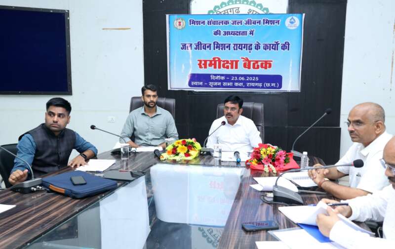 रायगढ़ । जल जीवन मिशन के तहत रायगढ़ जिले को छत्तीसगढ़ का पहला “हर घर जल” जिला बनाने के लक्ष्य को लेकर मिशन संचालक श्री जितेन्द्र शुक्ला ने सोमवार को जिला कार्यालय के सृजन सभा कक्ष में विस्तारपूर्वक समीक्षा बैठक की। बैठक में कलेक्टर श्री मयंक चतुर्वेदी, सीईओ जिला पंचायत श्री जितेन्द्र यादव सहित संबंधित विभागों के अधिकारी मौजूद रहे।