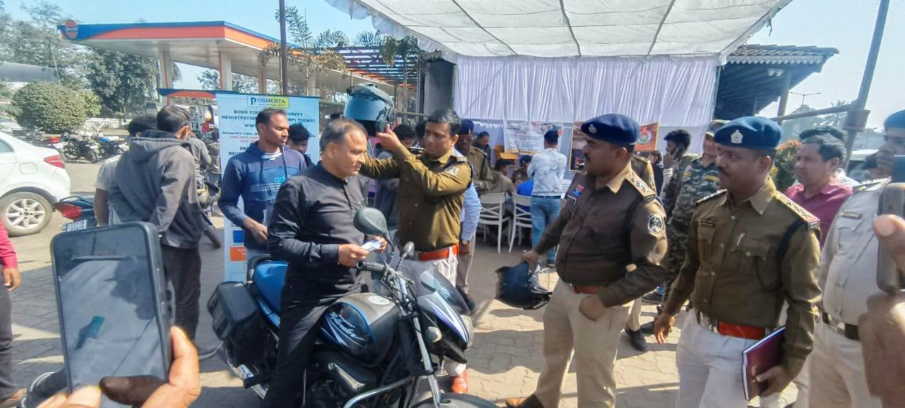 रायगढ़ । राष्ट्रीय सड़क सुरक्षा माह–2026 के अंतर्गत आज दिनांक 06 जनवरी 2026 को यातायात पुलिस रायगढ़ एवं परिवहन विभाग रायगढ़ के संयुक्त तत्वावधान में छातामुड़ा चौक पर हेलमेट जागरूकता को लेकर विशेष शिविर का आयोजन किया गया।