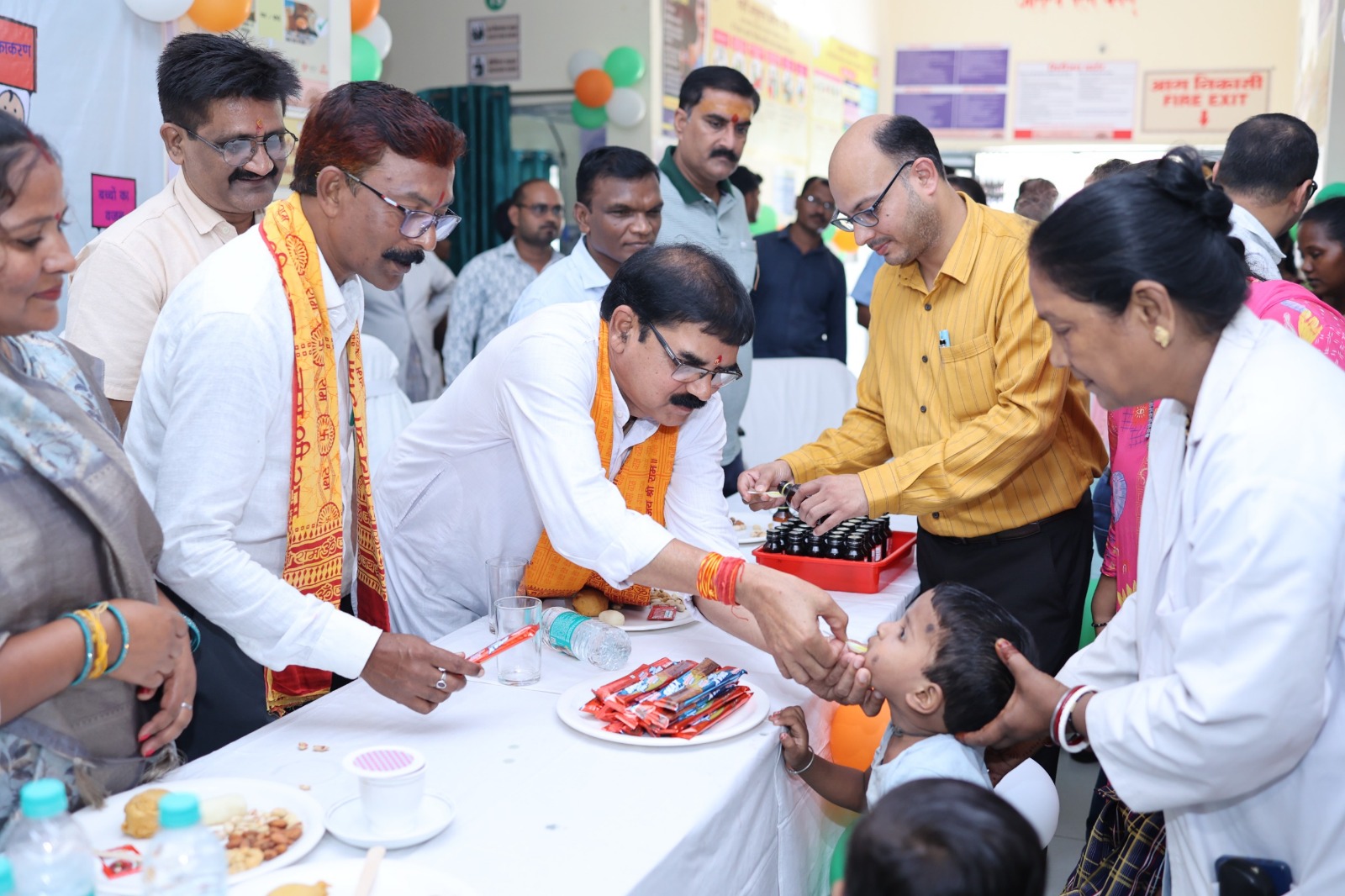 रायगढ़, 30 अगस्त 2025/ राष्ट्रीय टीकाकरण कार्यक्रम के अंतर्गत शिशु संरक्षण माह का जिला स्तरीय शुभारंभ शहरी प्राथमिक स्वास्थ्य केंद्र, मोदीनगर में आयोजित किया गया। इस अवसर पर महापौर श्री जीवर्धन चौहान द्वारा बच्चों को विटामिन ए की खुराक पिलाकर कार्यक्रम की विधिवत शुरुआत की गई। मौके पर सभापति श्री डिग्री लाल साहू, पार्षद श्री अमित शर्मा, श्रीमती ज्योति यादव, श्री पंकज कंकरवाल एवं श्रीमती त्रिवेणी डहरे उपस्थित रही।