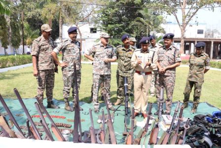 AK-47, SLR, INSAS, .303 रायफल, 12 बोर गन, बीजीएल लॉन्चर, रॉकेट लॉन्चर, IED समेत अन्य हथियार एवं माओवादी सामग्री बरामद।