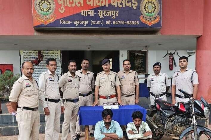 दिनांक 11.07.2025 को चौकी बसदेई पुलिस को मुखबीर से सूचना मिला कि ग्राम जूर का शेख नेजायत और ग्राम बंजा का डीएस कुमार सैनी एक मोटर सायकल में नशीली इंजेक्शन बिक्री करने ग्राम जूर से बंजा की ओर जा रहे है। पुलिस टीम के द्वारा ग्राम जूर में घेराबंदी लगाकर मोटर सायकल सहित दोनों को पकड़ा गया जिनके कब्जे से लिजेसिक इंजेक्शन 40 नग व एविल इंजेक्शन 40 कुल 80 नग नशीली इंजेक्शन जप्त किया गया।