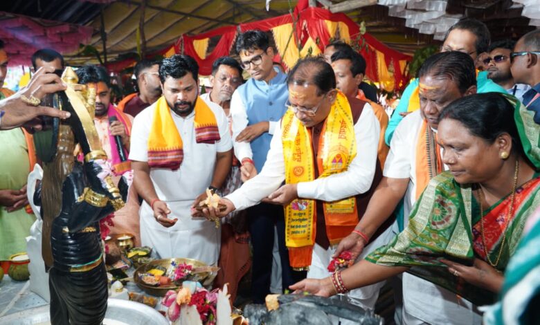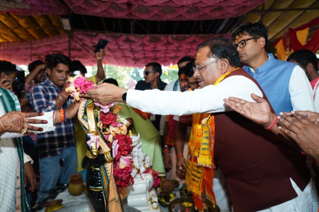 मुख्यमंत्री विष्णुदेव साय झगरपुर में श्री श्री रणेश्वर रामचण्डी मंदिर के वेदी पूजन में हुए शामिल