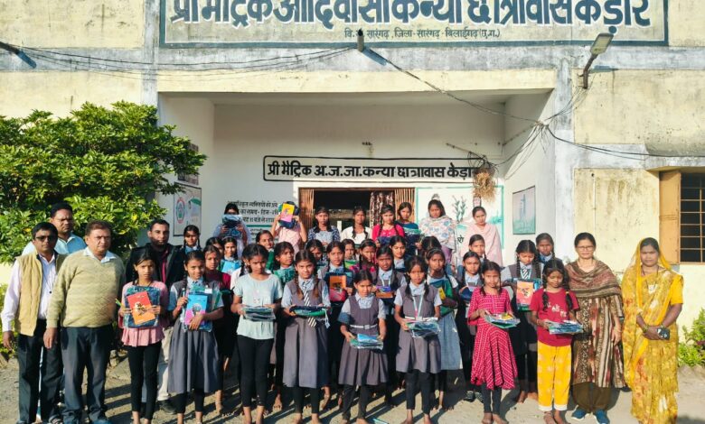 कन्या छात्रावास – केडार में बच्चों को लोवर – टी शर्ट , कॉपी-पेन , सीस पेंसिल , कटर व शार्पनर वितरण किया गया