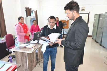 कलेक्टर ने निरीक्षण के दौरान खाद्य शाखा, महिला एवं बाला विकास विभाग,खनिज शाखा, आबकारी विभाग, खादी एवं ग्रामोद्योग, हथ करघा, अंत्यावसायी, आयुष, नगर तथा ग्राम निवेश, आर्थिक योजना एवं सांख्ययिकी, श्रम, आदिवासी विकास, उद्यानिकी, मत्स्य पालन, ट्रेजरी,समाज समाज कल्याण,भू अभिलेख, वित्त लिपिक, शिकायत शाखा, नाजिर आदि कार्यालयों का निरीक्षण किया और उपस्थिति पंजी का अवलोकन किया।