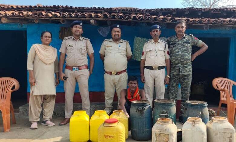 11 लीटर अवैध महुआ शराब एवं 330 किलो महुआ लाहन जब्त