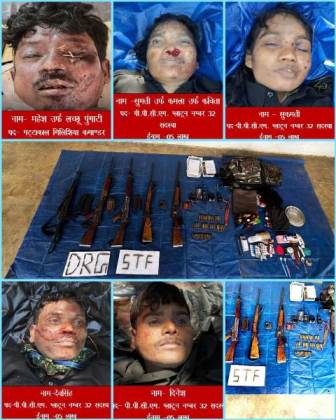 मुठभेड़ में मारे गयें माओवादियों की पी.पी.सी.एम. पीएलजीए प्लाटून नंबर 32 के सदस्य देवसिंह, दिनेश, सुमती उर्फ कमला उर्फ कविता, सुकमती एवं गट्टाकाल मिलिशिया कमाण्डर महेश उर्फ लच्छू पुंगाटी के रूप में पहचान हुई।*