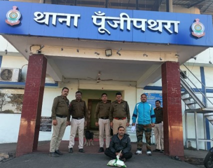 तराईमाल में पूंजीपथरा पुलिस की गांजा रेड, आरोपी गिरफ्तार: करीब एक किलो गांजा और मोटरसाइकिल जब्त