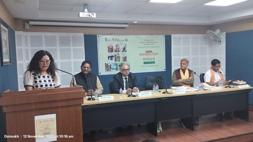 दोईमुख, ईटानगर। अरुणाचल प्रदेश में राष्ट्रीय पुस्तक न्यास, भारत की पहली बार हिंदी के रचनाकारों की ‘नवसाक्षर लेखन कार्यशाला’ का आयोजन राजीव गांधी विश्वविद्यालय, दोईमुख, ईटानगर में 12 से 14 नवंबर, 2025 को राजीव गांधी विश्वविद्यालय के हिंदी विभाग तथा नेशनल बुक ट्रस्ट के संयुक्त तत्वावधान में किया जा रहा है, जिसके अंतर्गत आज दिनांक 12 नवंबर, 2025 को विश्वविद्यालय के दूरस्थ शिक्षा विभाग में राजीव गांधी विश्वविद्यालय के माननीय कुलपति प्रो. जयदेव साहू तथा राष्ट्रीय पुस्तक न्यास, भारत के मुख्य संपादक एवं संयुक्त निदेशक श्री कुमार विक्रम ने उद्घाटन कर शुभारंभ किया।