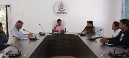 पुलिस अधीक्षक कार्यालय जशपुर में बैंको की सुरक्षा के संबंध में अतिरिक्त पुलिस अधीक्षक जशपुर श्री अनिल कुमार सोनी ने जिला मुख्यालय में स्थित सभी बैंक के मैनेजरों/ अधिकारियों की ली बैठक