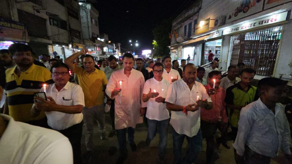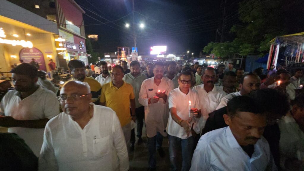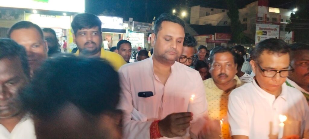 रायगढ़ । कांग्रेस के वरिष्ठ नेता और लोकसभा में नेता प्रतिपक्ष राहुल गांधी के द्वारा मतदाता सूचियों में भारी गड़बड़ी के खुलासे के बाद आखिल भारतीय कांग्रेस कमेटी ने देश व्यापी ‘वोट चोर गद्दी छोड़’ के नाम से चरणबद्ध आंदोलन की घोषणा की है। इसके अंतर्गत 14 अगस्त को रायगढ़ जिला मुख्यालय में छत्तीसगढ़ शासन के पूर्व मंत्री खरसिया विधायक उमेश नंदकुमार पटेल ,जिला कांग्रेस ग्रामीण व शहर के अध्यक्ष द्वय नगेंद्र नेगी व अनिल शुक्ला तथा कांग्रेस के समस्त कार्यकर्ता द्वारा कैंडिल मार्च निकाला गया।