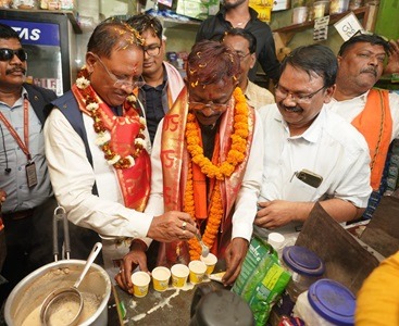 रायगढ़। चुनावी माहौल के बीच रायगढ़ में एक दिलचस्प नजारा देखने को मिला, जब मुख्यमंत्री विष्णु देव साय ने खुद चाय बनाकर लोगों को परोसी। यह खास पल उस समय आया, जब वे भाजपा महापौर प्रत्याशी जीवर्धन चौहान के समर्थन में पांच किलोमीटर लंबा रोड शो करने के बाद मिनीमाता चौक स्थित एक चाय दुकान पहुंचे। वहां उन्होंने स्टोव जलाकर अदरक, इलायची और चाय पत्ती डालकर कड़क चाय बनाई और खुद ही लोगों को प्याली थमाई।