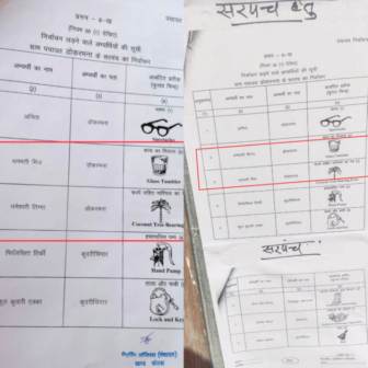 सोशल मीडिया के माध्यम से यह जानकारी आम हुई है कि सरपंच पद के प्रत्याशियों को जो चुनाव चिन्ह निर्वाचन आयोग की ओर से जारी किया गया है, उसमें और मतदान केंद्र के सामने जो मतपत्र का अधिकृत नमूना चस्पा किया गया है, उसमें दो प्रत्याशियों के चुनाव चिन्ह में परिवर्तन साफ तौर पर दिख रहा है। दरअसल, मतपत्र के प्रकाशन में यह एक गम्भीर त्रुटि हुई है। प्रत्याशी का नाम के ऊपर-नीचे हो जाने से चिन्ह बदल गया है।