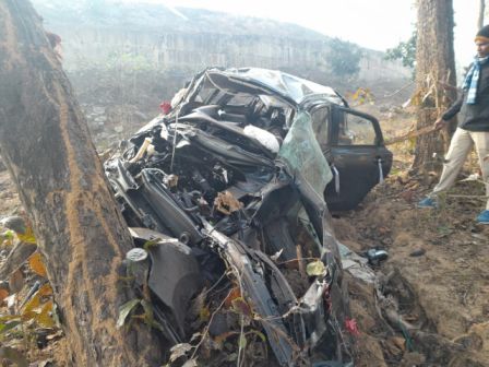 कार पर सवार दो लोगों की घटना स्थल पर हुई दर्दनाक मौत दो की हालत गंभीर