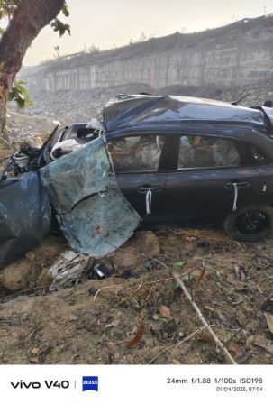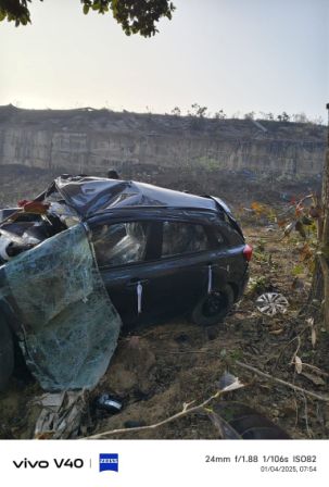 तेज रफ्तार कार अनियंत्रित होकर खाई में गिरी