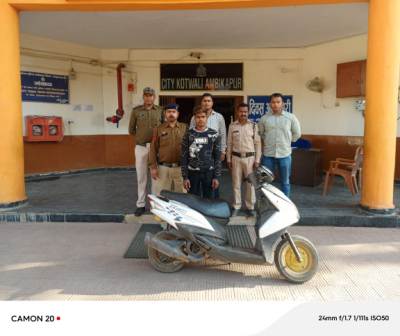 स्कूटी वाहन चोरी के मामले मे सरगुजा पुलिस कों मिली सफलता, मामले का आरोपी किया गया गिरफ्तार
