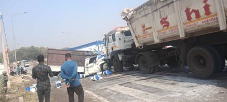 नेशनल हाईवे पर ट्रेलर और पिकअप में भिड़ंत, चालक गंभीर रूप से घायल