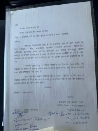 जगदलपुर। मार्च के पहले सप्ताह में इंद्रावती नदी की जलधारा टूटने से किसानों के सामने गंभीर संकट खड़ा हो गया है। खेत सूखने और फसलें बर्बाद होने के कारण नाराज किसान सांसद महेश कश्यप के पास पहुंचे और समस्या का समाधान निकालने की मांग की।