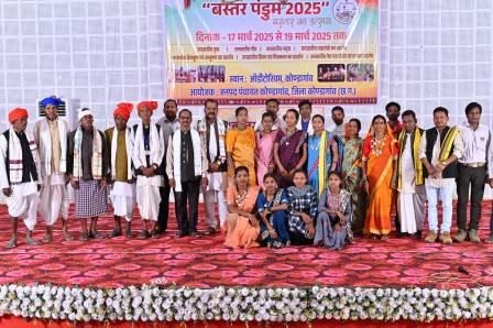 कोण्डागांव । बस्तर की जनजातीय संस्कृति के विभिन्न कलाओं के प्रदर्शन के साथ तीन दिवसीय विकासखण्ड स्तरीय बस्तर पण्डुम का आज भव्य समापन हुआ। कोण्डागांव के स्थानीय ऑडीटोरियम में आयोजित बस्तर पण्डुम के तीसरे और अंतिम दिन जनजातीय नाट्य, शिल्प कला एवं चित्रकला के प्रदर्शन और जनजातीय पेय पदार्थों एवं व्यंजनों की प्रदर्शनी लगाई गई। कार्यक्रम में समाज प्रमुखजनों एवं प्रबुद्धजनों ने निर्णायक के रूप में अपनी भूमिका निभाई।