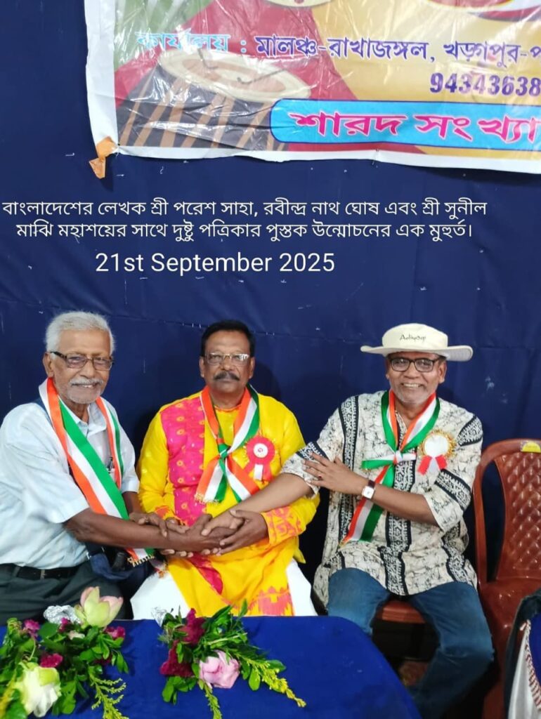 चक्रधरपुर । चक्रधरपुर के प्रख्यात बंगलाभाषी साहित्यकार बंगालीटोला निवासी व रबिंद्र सोसायटी चक्रधरपुर के सचिव रविंद्र नाथ घोष के द्वारा लिखे गए दुष्टु पत्रिका का उन्मोचन रविवार को पश्चिम बंगाल के मेदिनीपुर स्थित विद्यासागर स्मृति सभागार में रंगारंग कार्यक्रमों के बीच संपन्न हुआ।