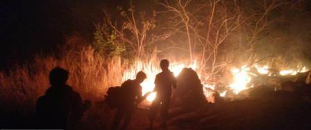 वन विभाग के अमले के साथ फायर वाचर्स और वन प्रबंधन समिति आग बुझाने में कर रहे सहयोग