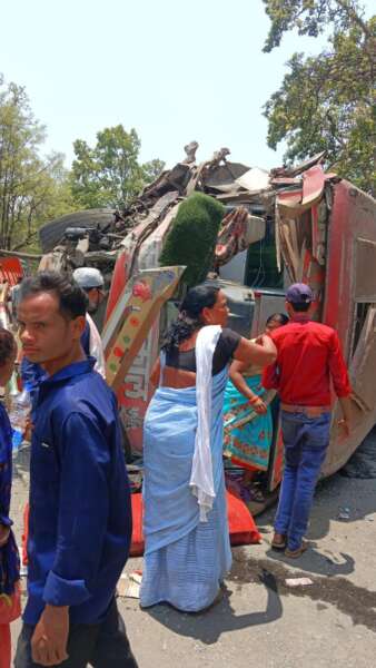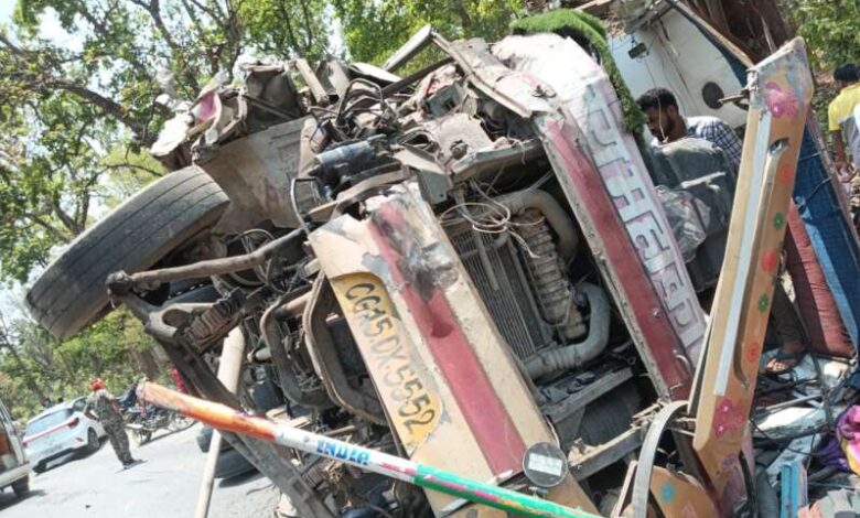 ट्रक और बस के टक्कर, अनियंत्रित होकर पलटी यात्री बस, 11 घायल