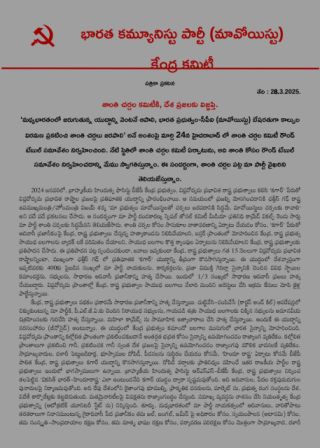 इन परिस्थितियों में माओवादियों ने सरकार से संघर्ष विराम की मांग करते हुए शांति वार्ता के लिए तत्परता जताई है। उनकी केंद्रीय समिति ने एक प्रेस विज्ञप्ति जारी कर दावा किया कि ‘कगार ऑपरेशन’ के तहत आदिवासियों और पार्टी के कार्यकर्ताओं पर अत्याचार हो रहा है।
