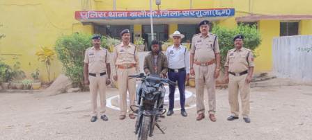 दुपहिया वाहन चोरी के मामले मे सरगुजा पुलिस कों मिली सफलता, मामले का आरोपी किया गया गिरफ्तार
