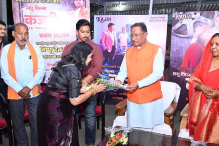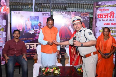 बगिया में माननीय मुख्यमंत्री श्री विष्णुदेव साय की गरिमामयी उपस्थिति में एसएसपी श्री शशि मोहन सिंह द्वारा मानव तस्करी पर लिखित एवं निर्देशित लघु फिल्म कजरी द बैटल फाॅर फ्रीडम का भव्य प्रथम प्रदर्शन किया गया
