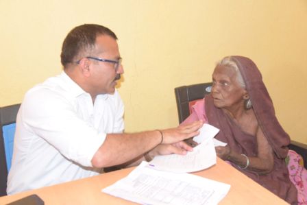 कलेक्टर ने कुंवरपुर में बुजुर्ग रूढ़िबाई से संवाद करते हुए सुशासन तिहार के संबंध में जानकारी दी और कहा कि उनके द्वारा डाले गए आवेदन का निराकरण एक माह के भीतर सुनिश्चित किया जाएगा।