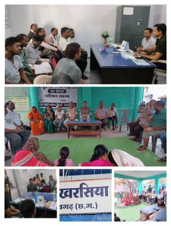 खरसिया। सुशासन तिहार 2025 के अंतर्गत खरसिया के ग्राम महका में जन चौपाल का आयोजन किया गया, जिसमें बड़ी संख्या में ग्रामीणों ने भाग लिया। इस अवसर पर स्थानीय नागरिकों ने थाना प्रभारी राजेश जांगड़े के समक्ष अपनी विभिन्न समस्याएं और मांगें रखीं। थाना प्रभारी ने सभी शिकायतों को गंभीरता से सुनते हुए त्वरित निराकरण की पहल की। साथ ही उन्होंने ग्रामीणों से अपील की कि किसी भी अवैध गतिविधि की जानकारी तत्काल पुलिस को दें, ताकि उचित कार्रवाई की जा सके।