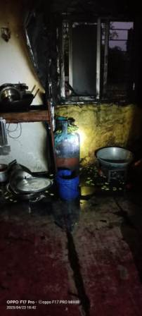 किचन के गैस सिलेंडर के जर्जर पाईप से गैस रिसाव के बाद हुआ धमका