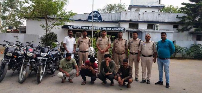 मोटर सायकल चोरों पर सूरजपुर पुलिस की बड़ी कार्यवाही, 5 लाख रूपये कीमत के 12 नग मोटर सायकल जप्त कर 4 आरोपियों को थाना जयनगर पुलिस ने किया गिरफ्तार