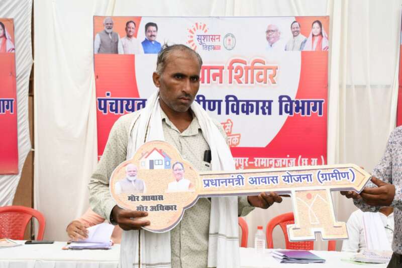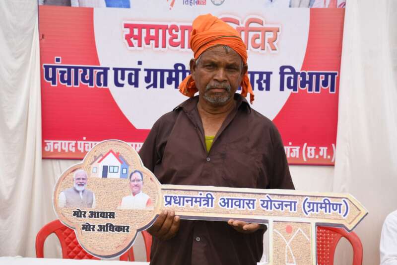 शिविर में उपस्थित जनप्रतिनिधियों द्वारा हितग्राहियों को नवनिर्मित आवास की चाबी सौंप हार्दिक बधाई एवं शुभकामनाएं दी गई। गौरतलब है कि प्रधानमंत्री श्री नरेन्द्र मोदी द्वारा शुरू की गई यह योजना और मुख्यमंत्री श्री विष्णु देव साय की नेतृत्व में क्रियान्वयन की दृढ़ता ने इस बदलाव को संभव बनाया है कि परिवार न सिर्फ सुरक्षित छत के नीचे हैं, बल्कि सम्मान और समृद्धि की राह पर भी अग्रसर हो रहे है। यह सिर्फ पक्के आवास की नहीं, बल्कि सुशासन की कहानी है, जहाँ सरकार की नीतियाँ कागज़ से निकलकर ज़मीन तक पहुँच रही हैं।