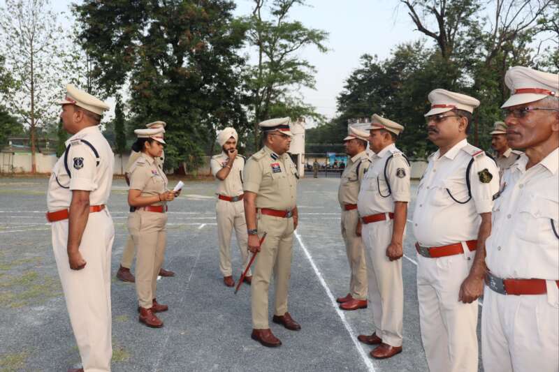 परेड की सलामी पश्चात ड्रिल कराकर अधिकारियो/कर्मचारियों को फिट रहकर बेहतर कार्यशैली बनाये रखने दिए गए दिशा निर्देश।