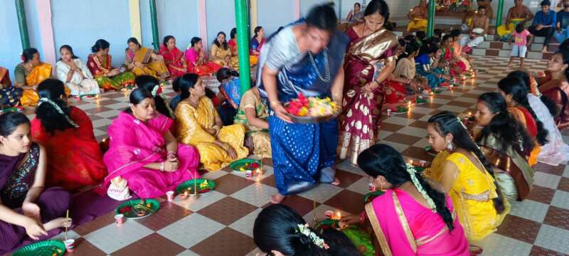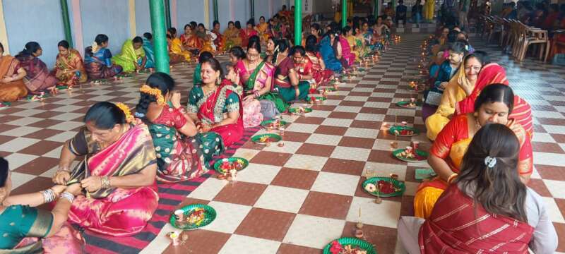 इस दौरान सामूहिक कुमकुम अर्चना में करीब 300 से भी अधिक युवतियों और विवाहित महिलाओं ने उपवास रख कर भगवान वेंकटेश्वर (सत्यनारायण भगवान) का विधिपूर्वक भक्ति भाव से पूजा की। मंत्रोच्चारण की गूंज के बीच कुमकुम , हल्दी, सुपाड़ी, पान, अक्षत, मिष्ठान, रक्षा सूत्र सहित पूजन सामग्री सत्यनारायण भगवान को अर्पित करते हुए श्रद्धालुओं ने व्रत पूजन कर सुख-समृद्धि का आशीर्वाद प्रभु से मांगा।
