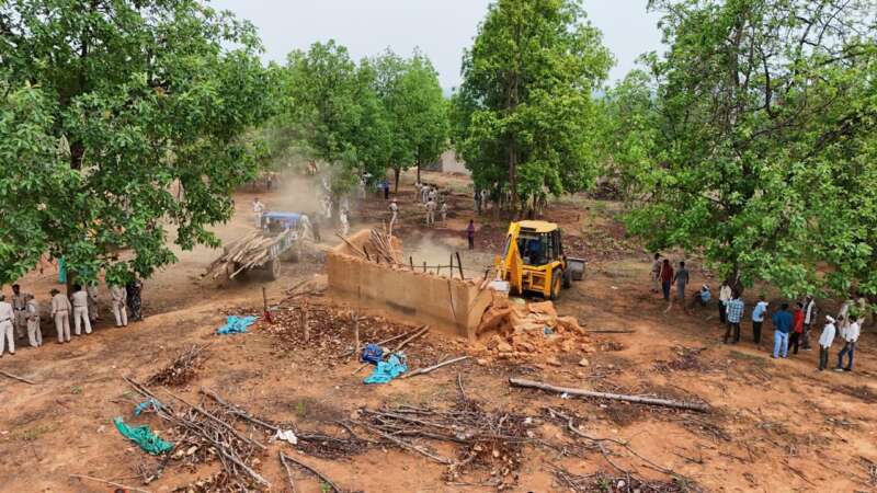 तत्पश्चात् उप वनमण्डलाधिकारी बलरामपुर श्री संतोष कुमार पाण्डेय, प्रशिक्षु ए.सी.एफ.श्री विकास निकुंज, वन परिक्षेत्राधिकारी रामानुजगंज श्री निखिल सक्सेना, वनपरिक्षेत्राधिकारी चान्दो श्री अमूल रतन राय एवं वनपरिक्षेत्र रामानुजगंज, बलरामपुर, वाड्रफनगर, धमनी, चान्दो एवं पुलिस बल, जिला प्रशासन के अधिकारी , कर्मचारियों के सहयोग से अवैध अतिक्रमण पर कार्यवाही करते हुये निर्मित 11 मकानों को ध्वस्त कर अतिक्रमण मुक्त कराया गया ।वनमण्डलाधिकारी ने कहा है कि इस प्रकार के अवैध अतिक्रमण के विरुद्ध सख्त कार्यवाही की जाएगी।